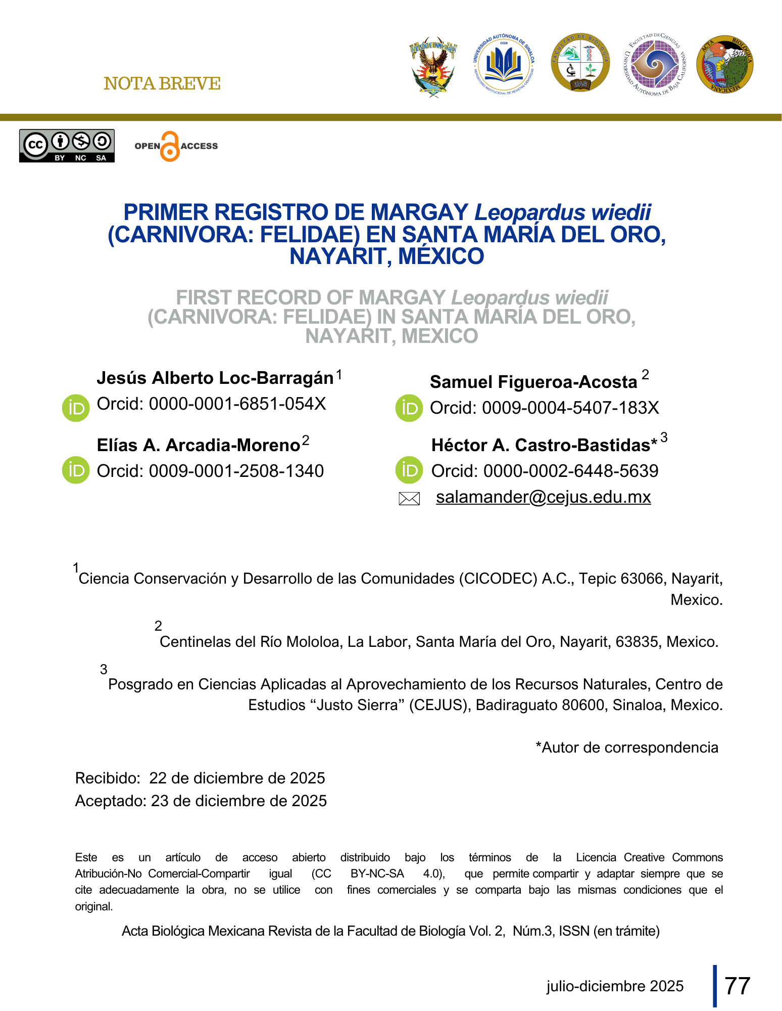 Acta Biológica Mexicana es una composición internacional de acceso libre. Su revisión, producción y administración es sufragada por la Universidad Autónoma de Sinaloa, residiendo en la Facultad de Biología (FBUAS) en coedición con la Facultad de ciencias de la Universidad Autónoma de Baja California (FCUABC). Los usuarios cuentan con acceso libre por dar uso (publicar o acceder) a la publicación.