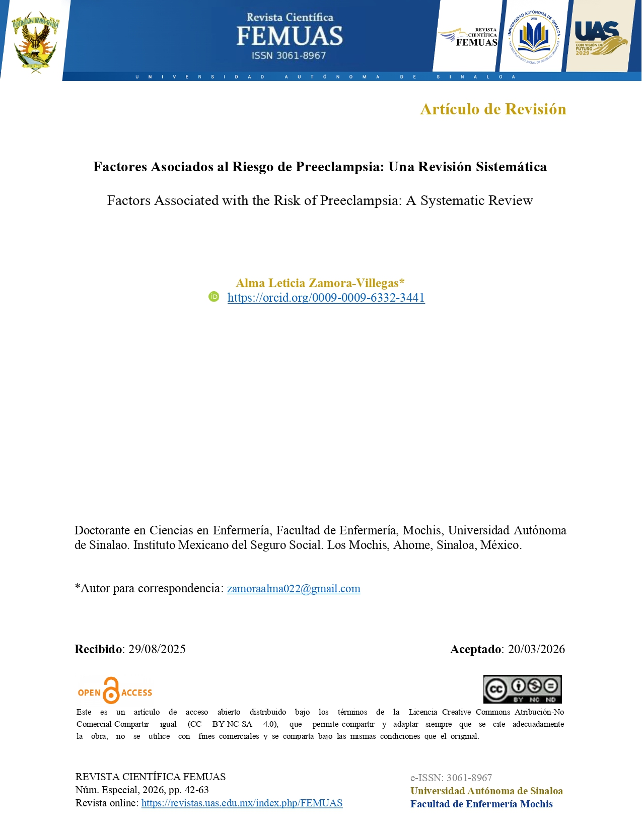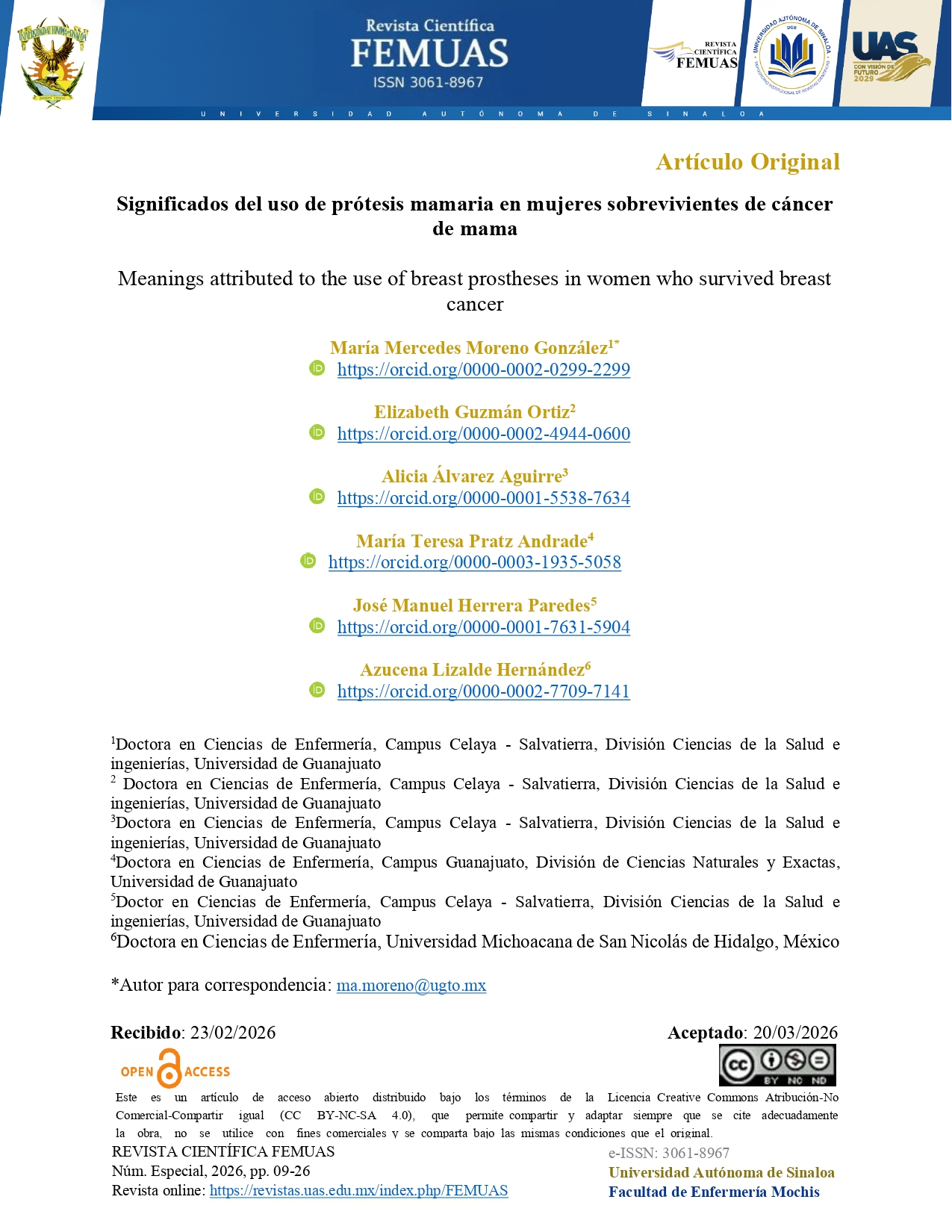 La Revista Científica FEMUAS, es una revista semestral, de la Facultad de Enfermería Mochis de la Universidad Autónoma de Sinaloa. Con el propósito fundamental de difundir la producción científica de Enfermería y áreas afines, buscando aumentar los conocimientos, brindar cuidados de calidad, fortalecer el perfil profesional y la colaboración multidisciplinaria.
