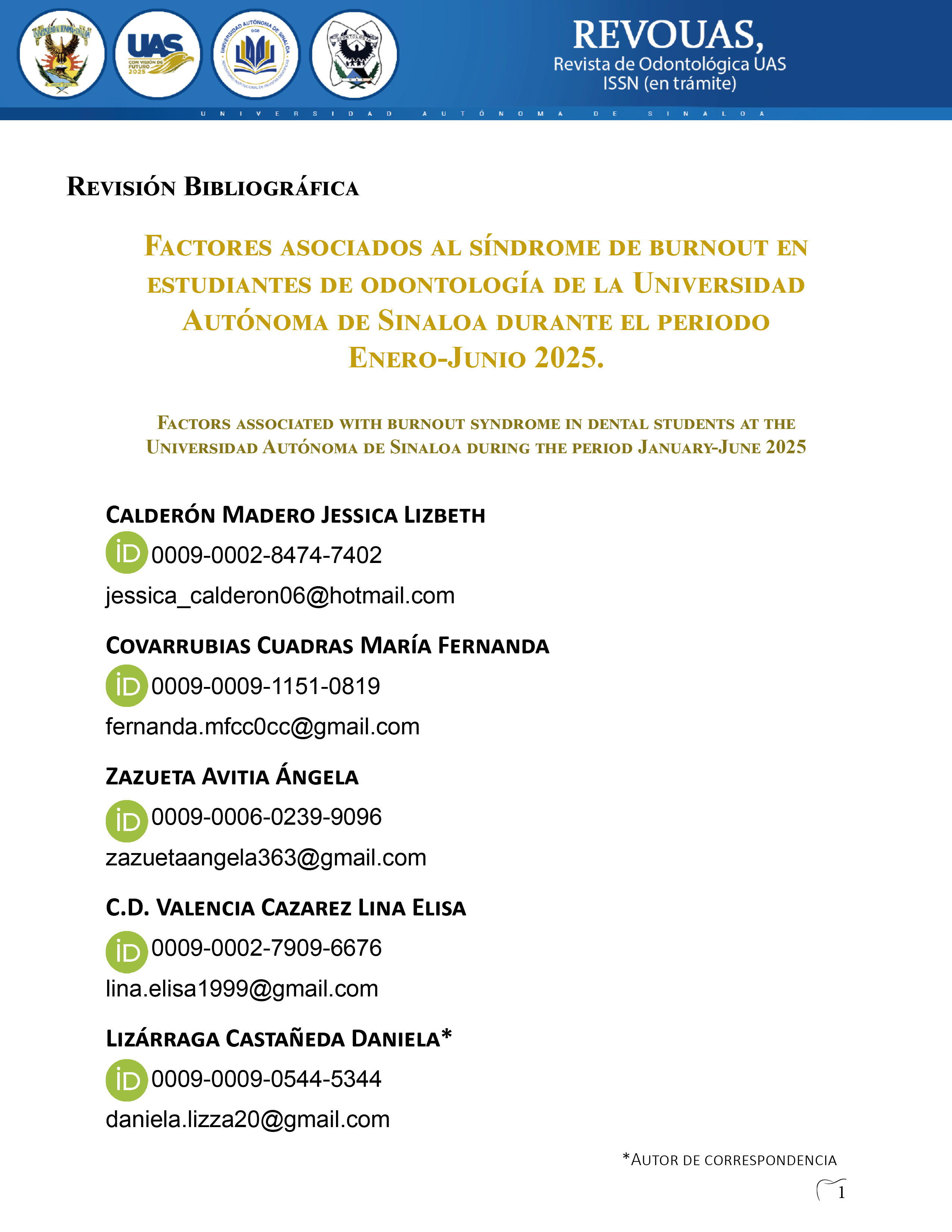 Vol. 1 Núm. 2 (2025): REVOUAS, Revista Odontológica UAS